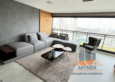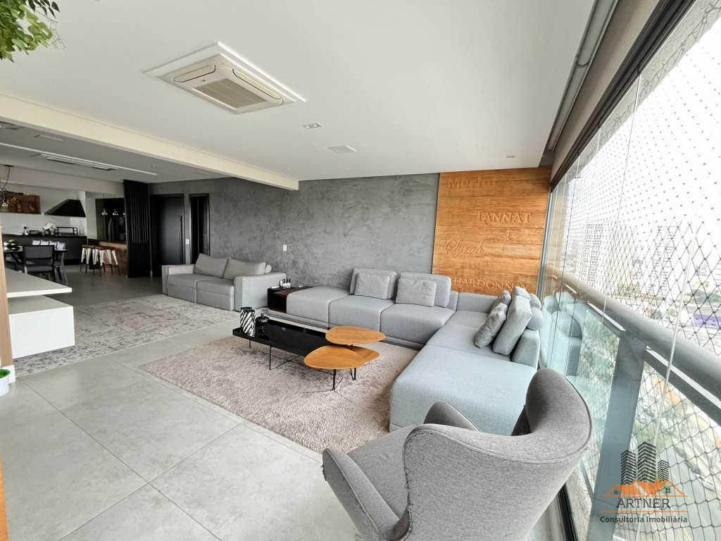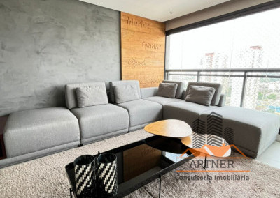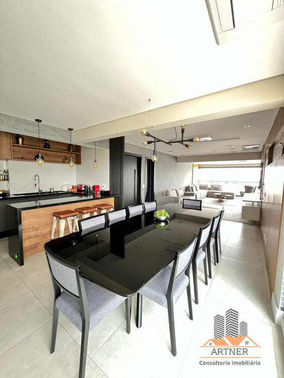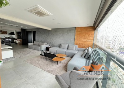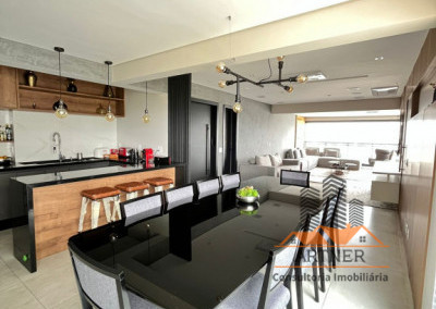 - Sala de estar, jantar e varanda integradas.